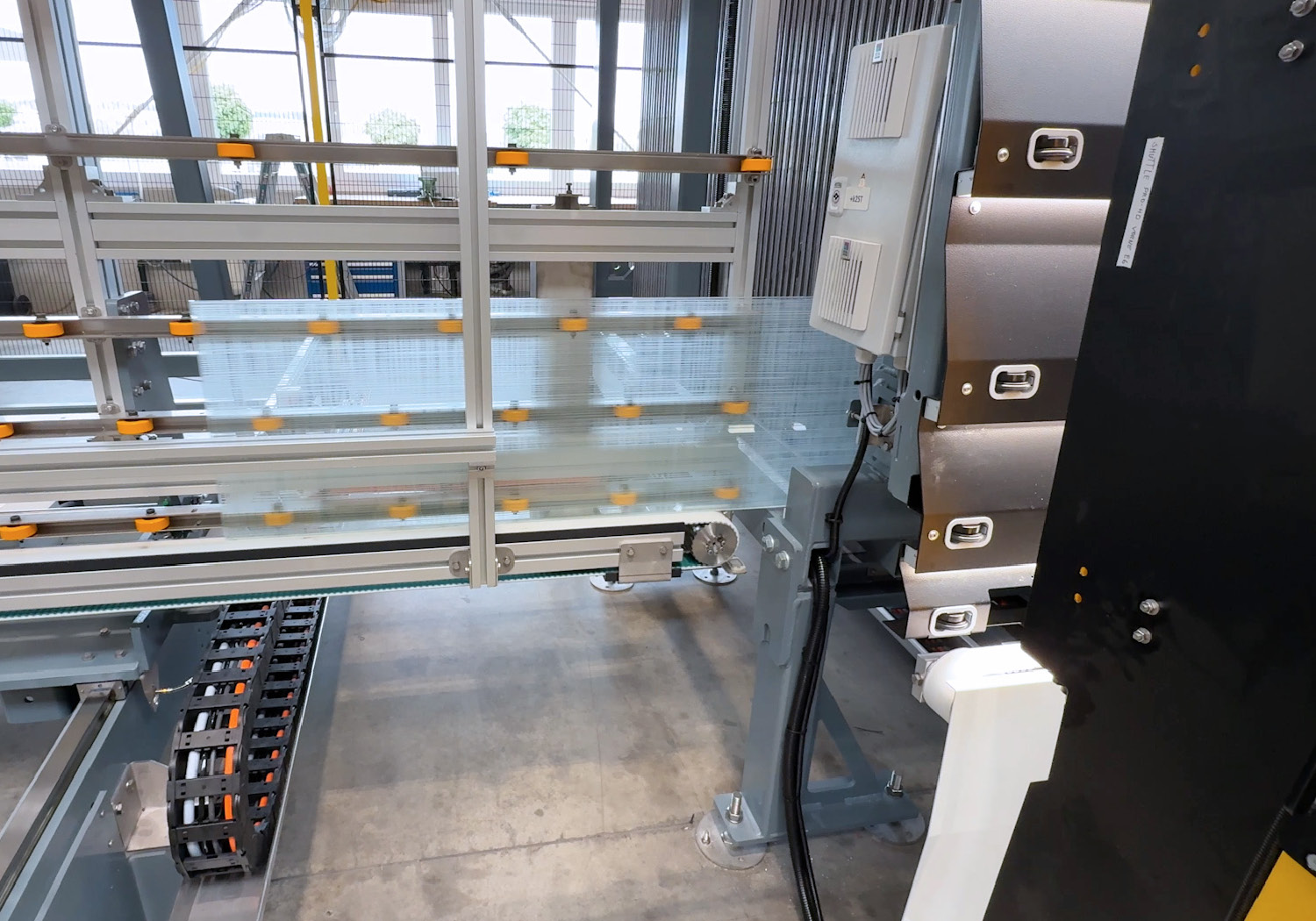 The proven system no longer just buffers glass automatically – it now actively organizes the entire material flow within the glass processing line.