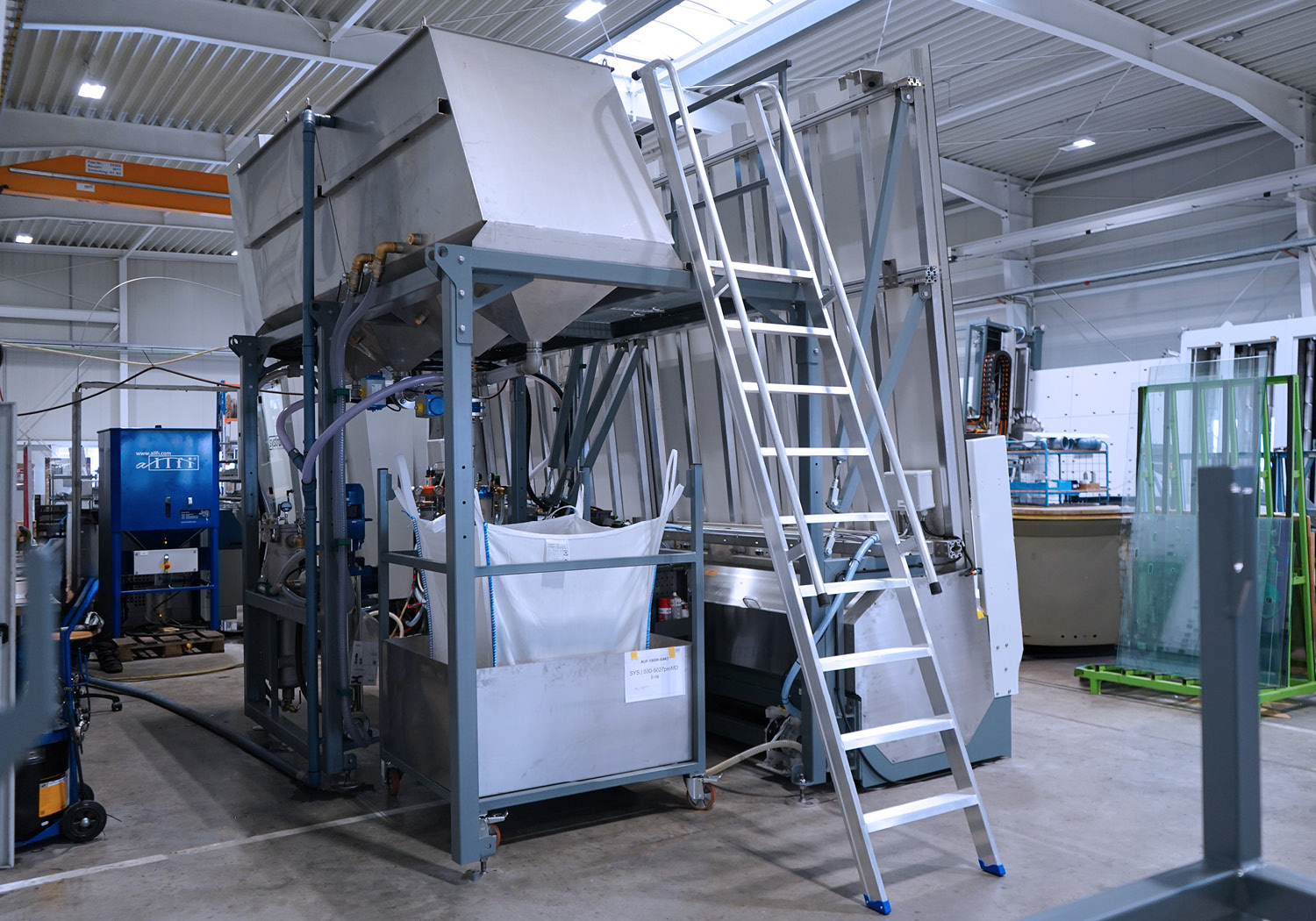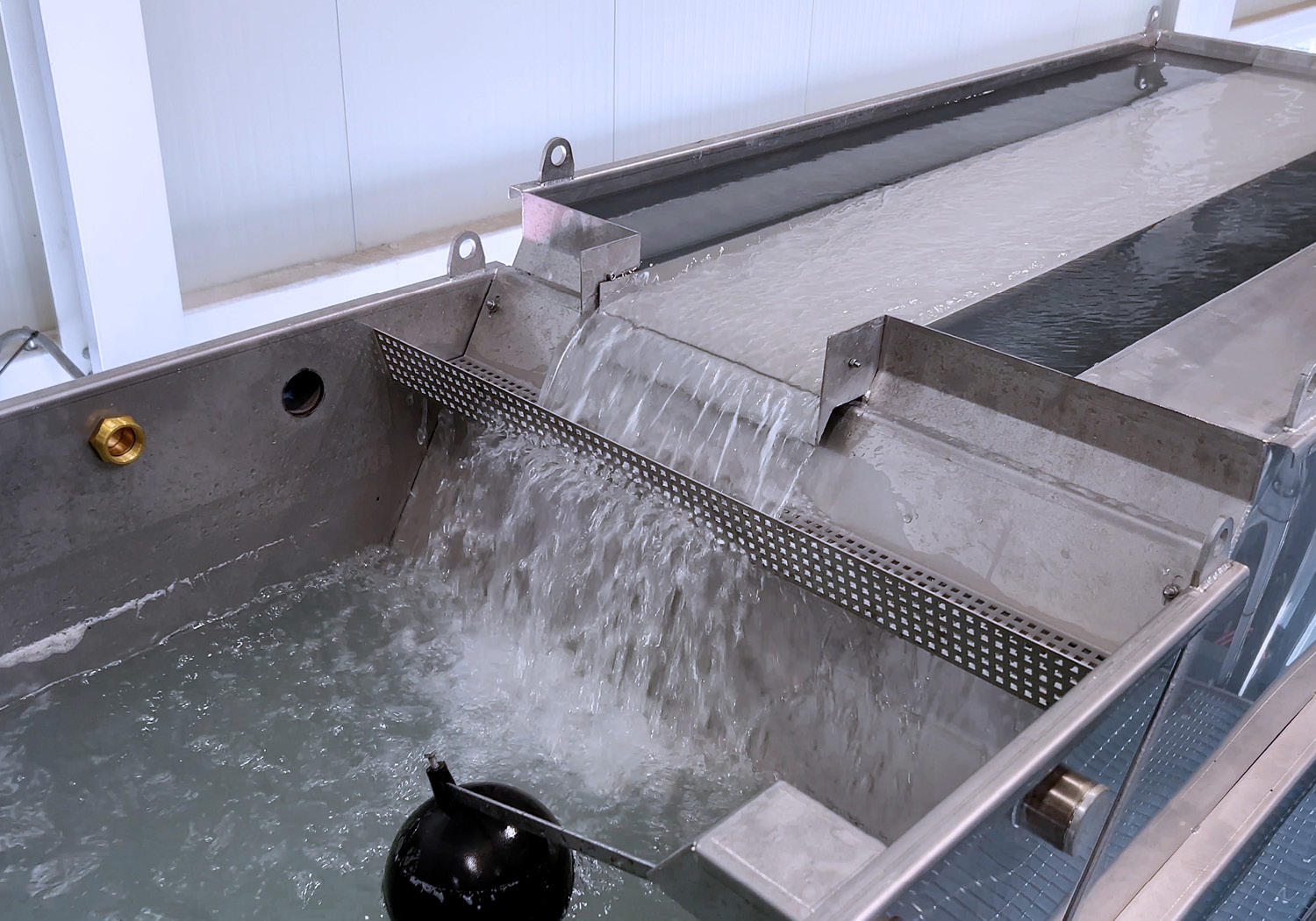 Das verschmutzte Prozesswasser gelangt aus verschiedenen Stationen der Glasbearbeitungsanlage in den Schmutzwassertank – unter anderem: