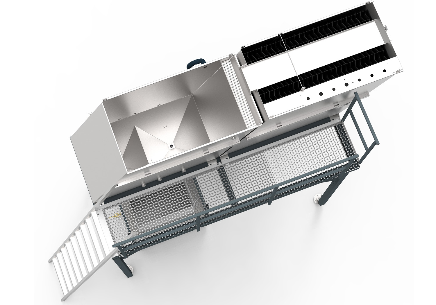 Diese zentrale, leicht zugängliche Anordnung reduziert Wege, vereinfacht Reinigungsarbeiten und erhöht die Maschinenverfügbarkeit erheblich.