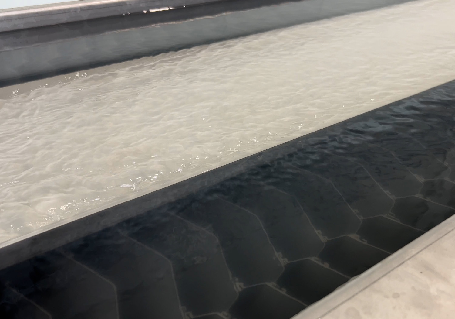 Im Schrägklärer werden die gebundenen Partikel über ein spezielles Wabensystem abgeschieden – eine bewährte Technologie aus der Fischindustrie.